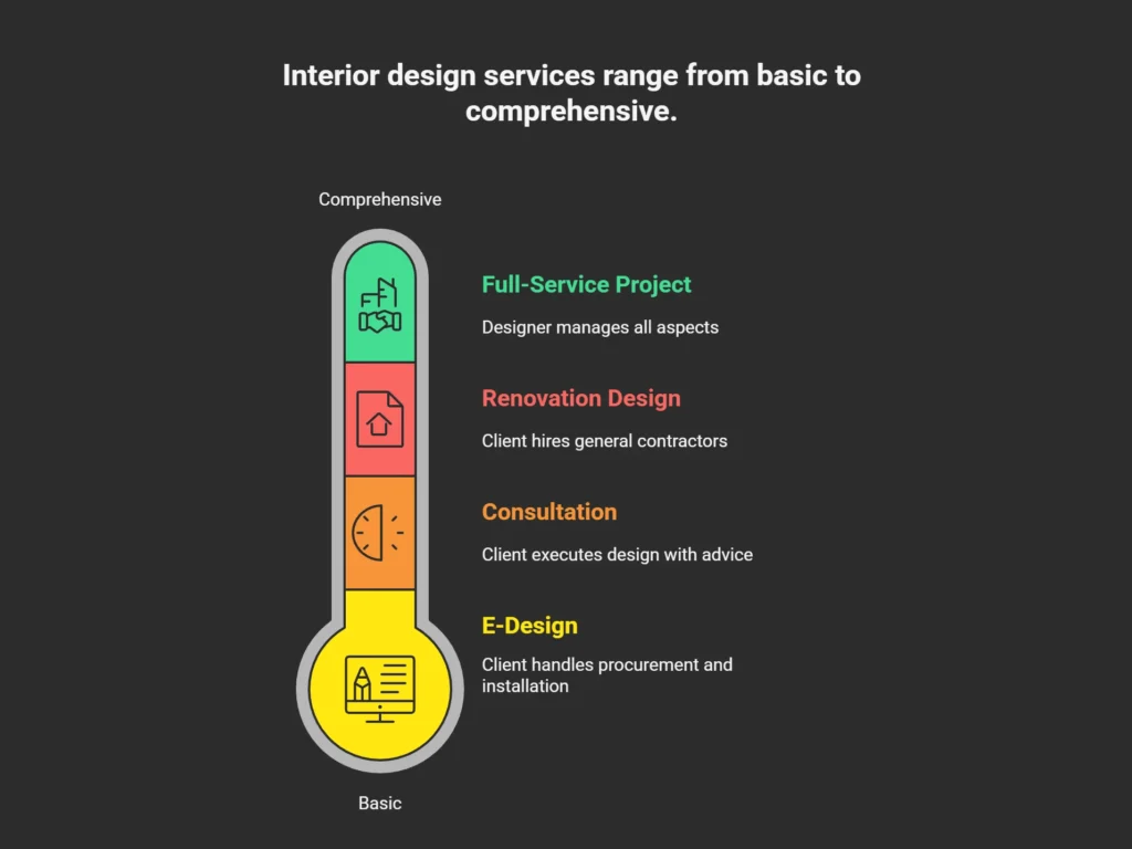 At the other end of the spectrum are architectural and interior design services. This is the highest level of comprehensive design, integrating structural changes (architecture) with aesthetic finishes (interior design).